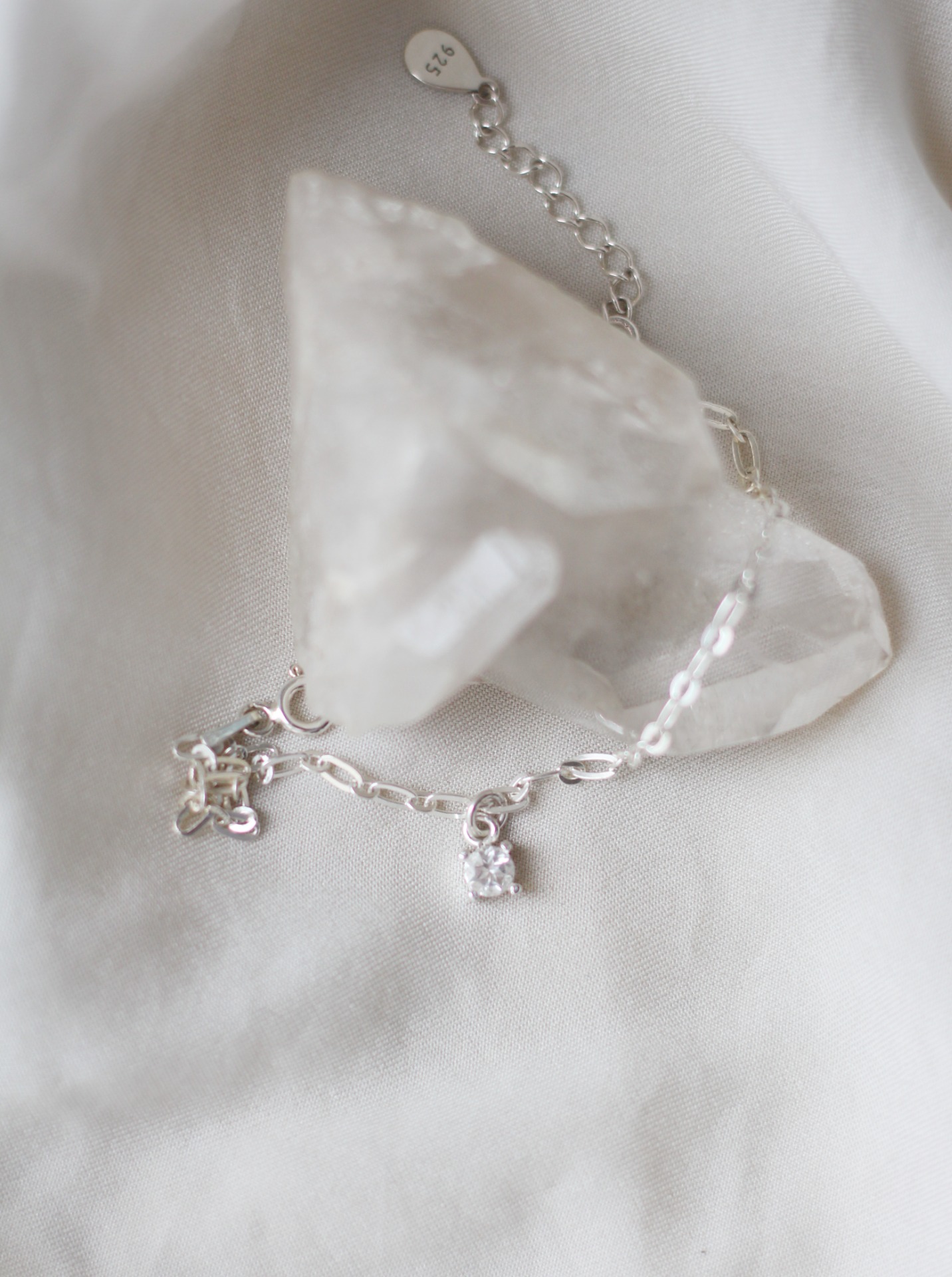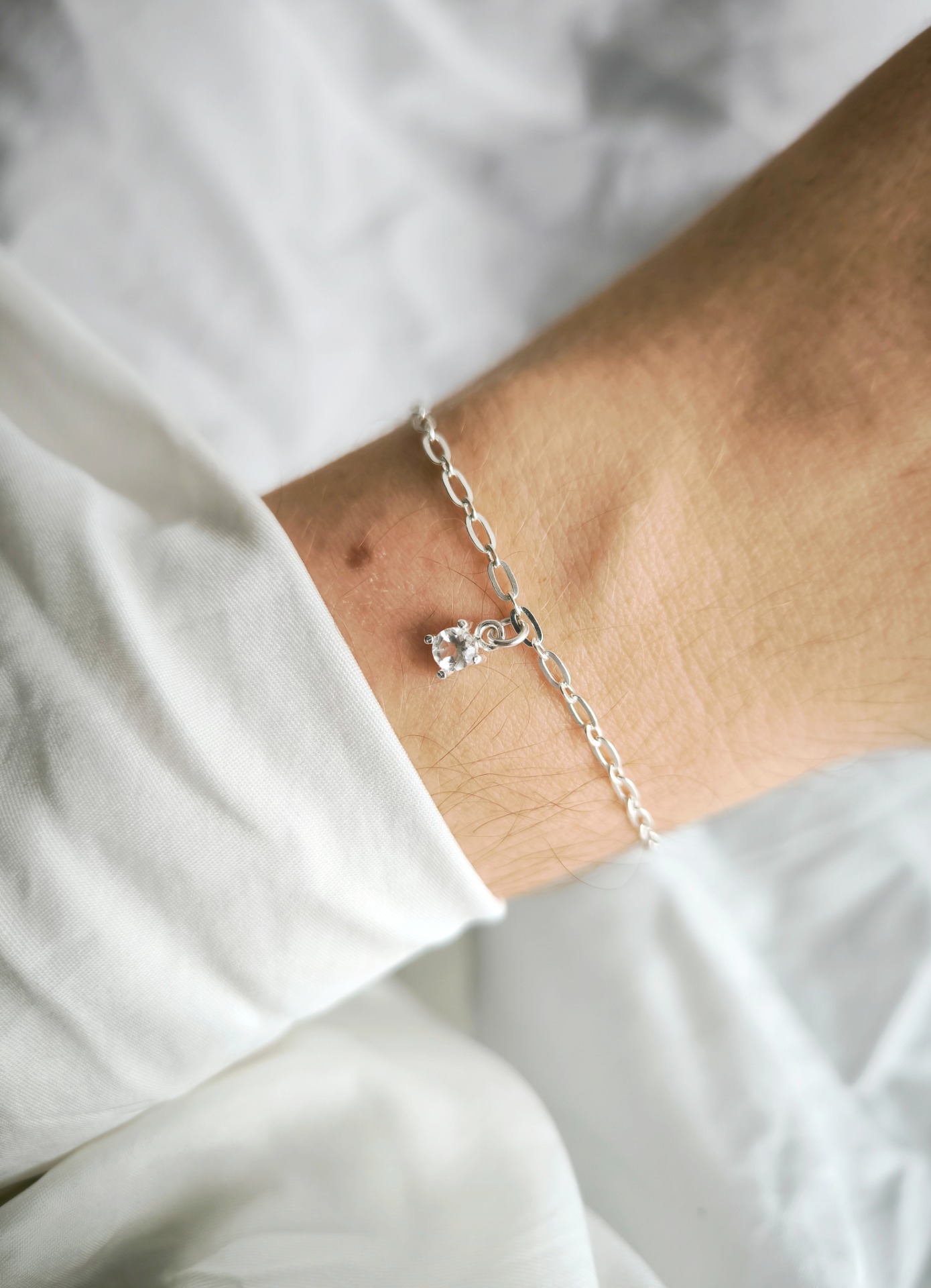 Náramek je 16 cm dlouhý plus 4 cm prodloužení. Křišťál je broušený v briliantovém brusu o velikosti 3 mm.