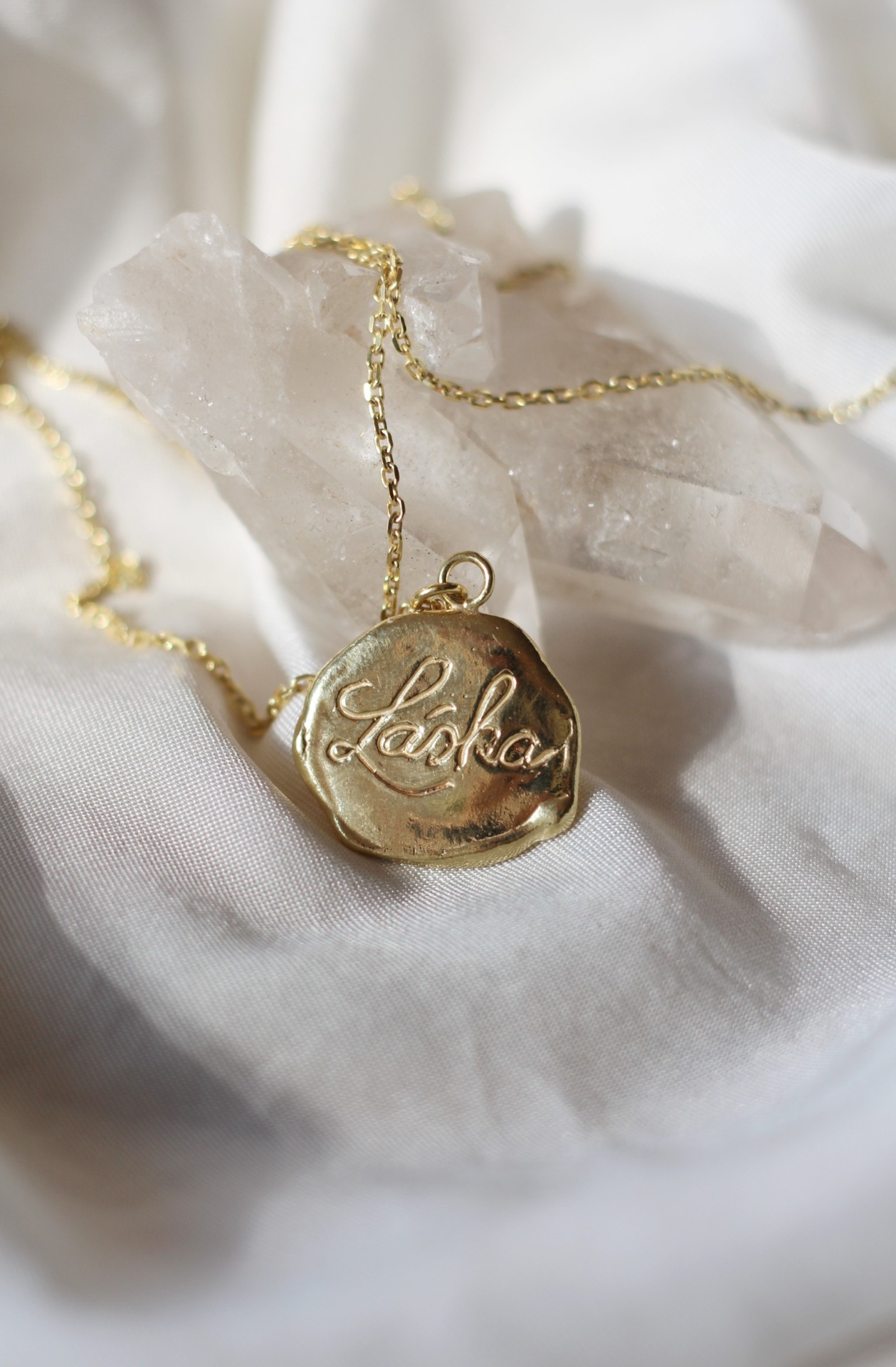 Náhrdelník na přední straně nese poselství Láska, na zadní straně je vyryto malé srdíčko.