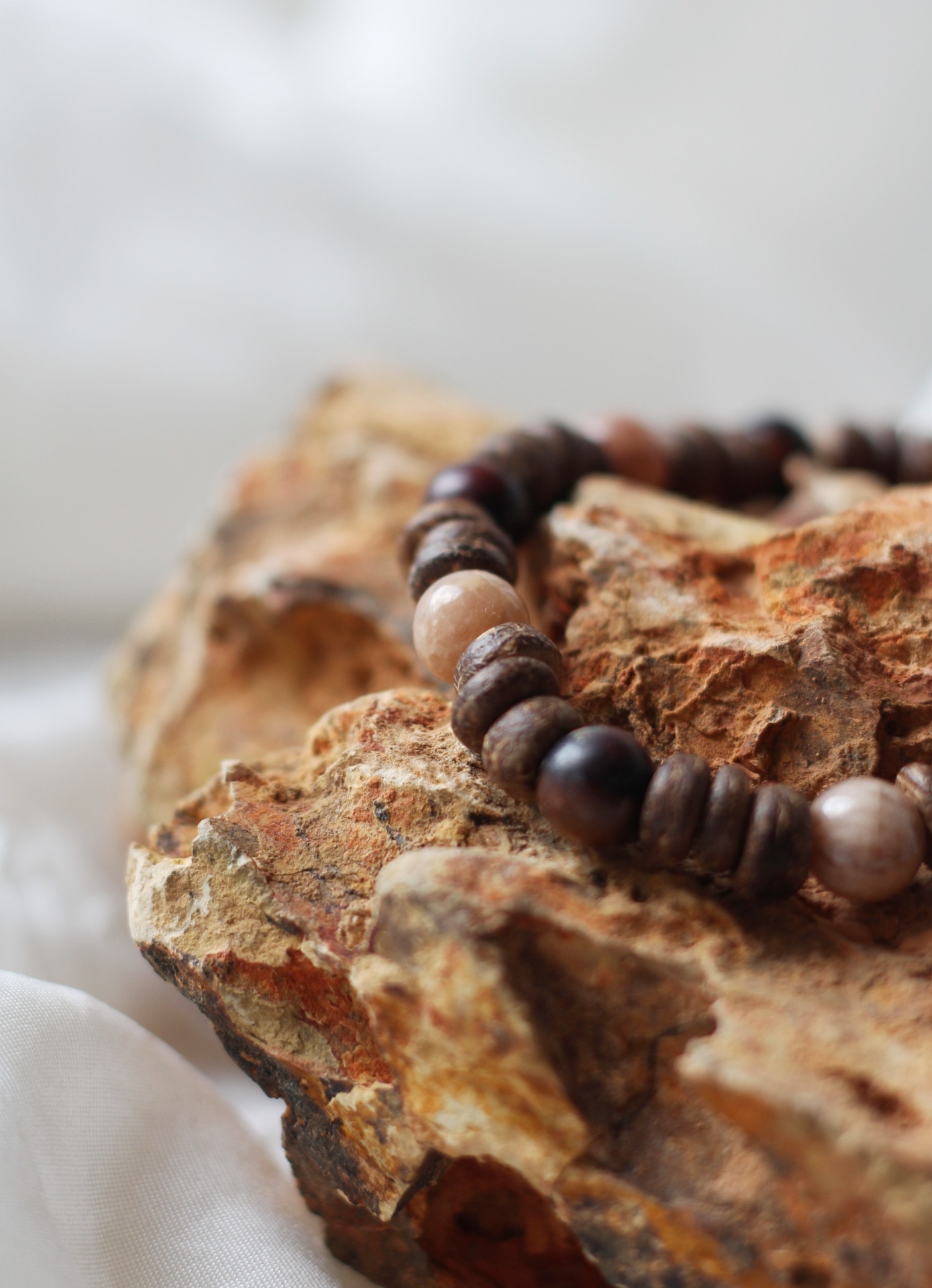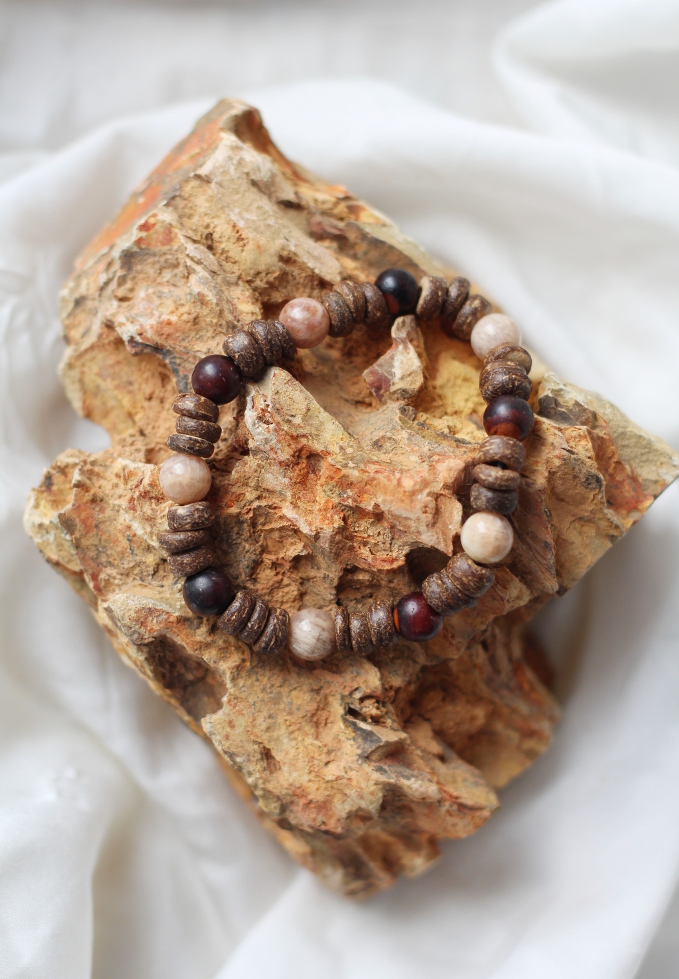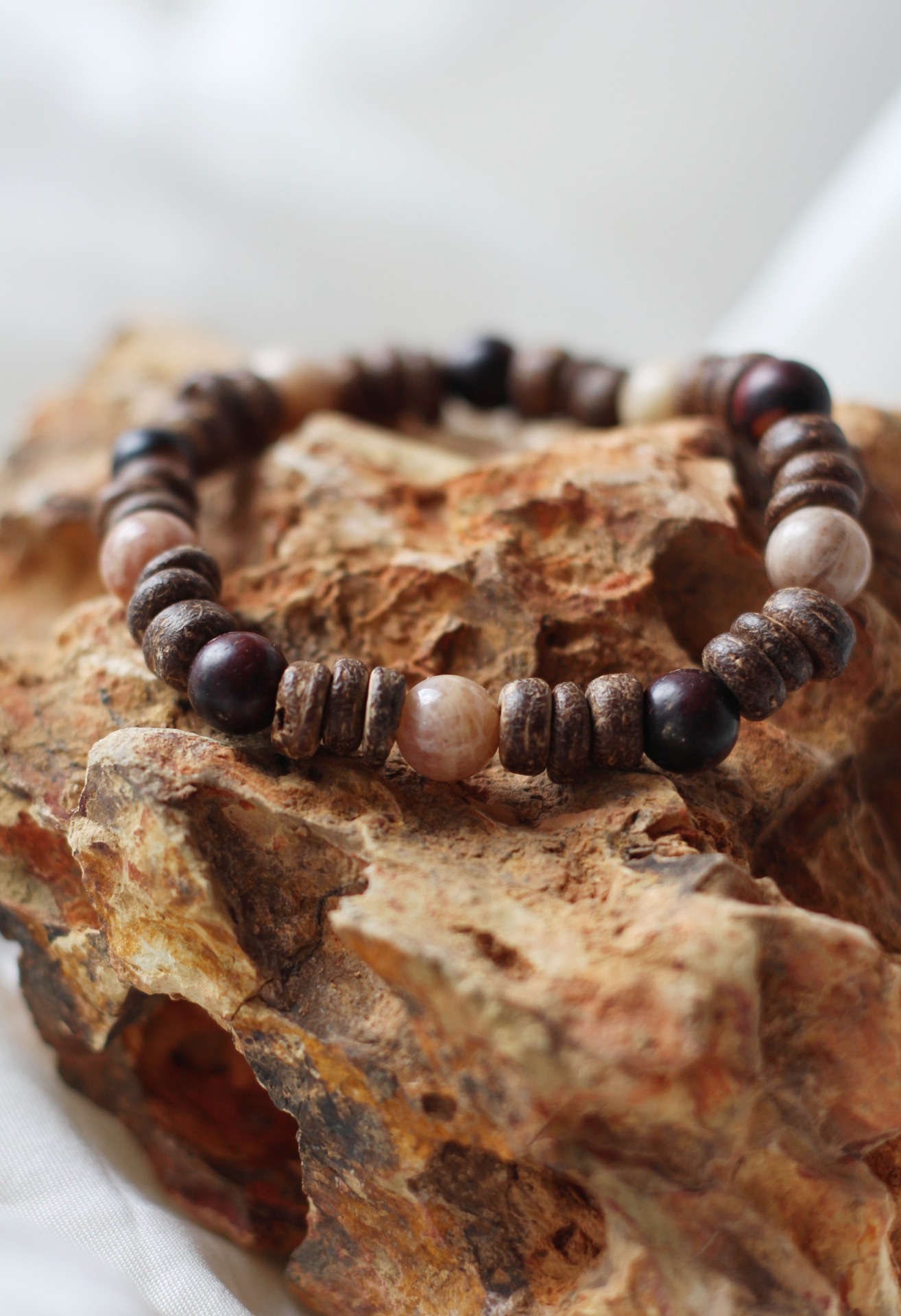 Materiál šperku: kokosové dřevo / sluneční kámen / šperkařská gumička