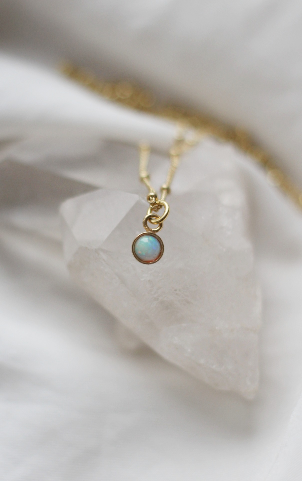 Řetízek je kuličkový a má dvě nastavitelné délky 40 a 42 cm. Opál je 4 mm veliký.