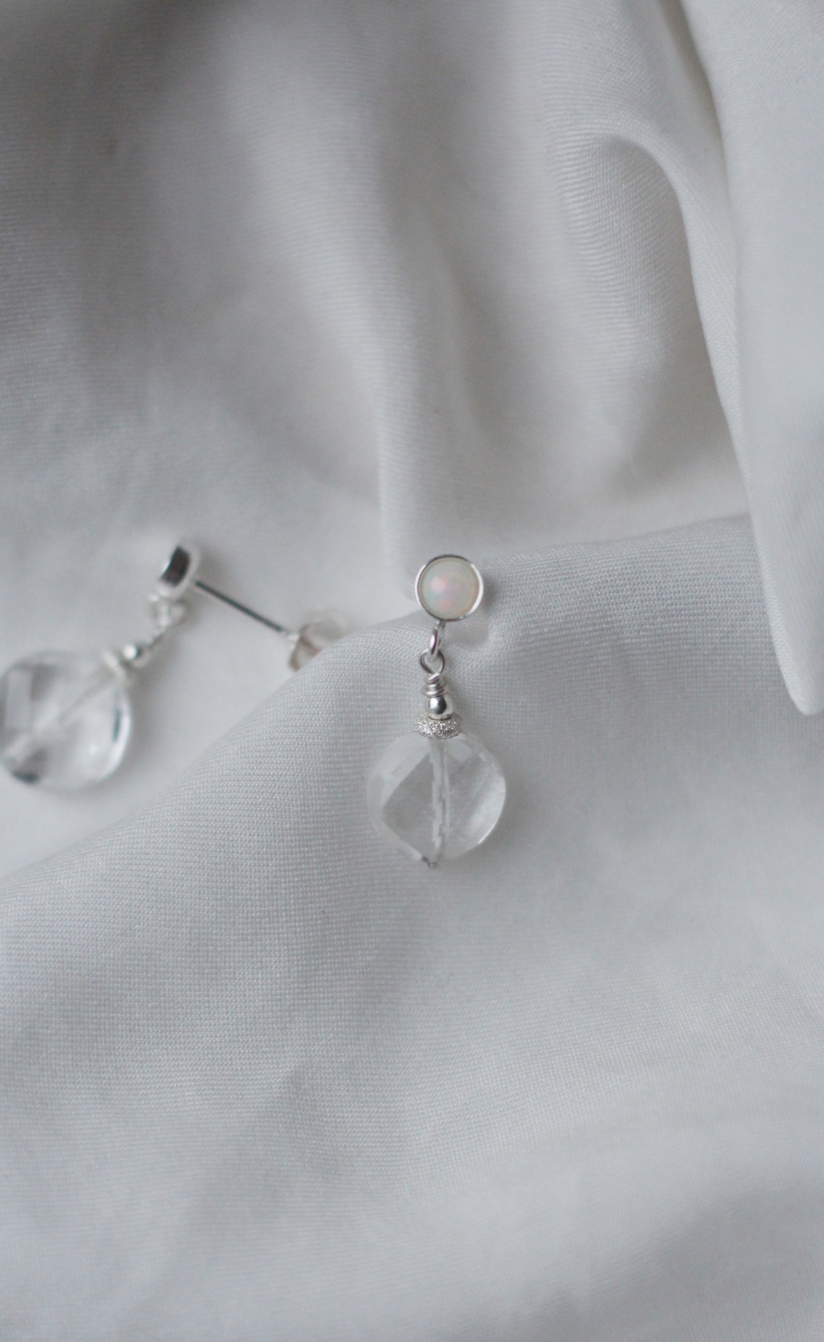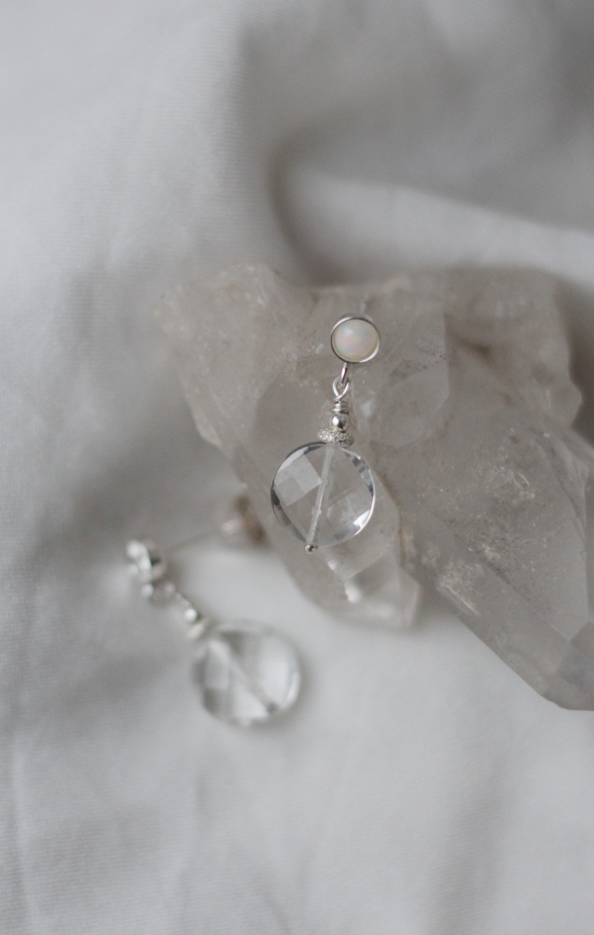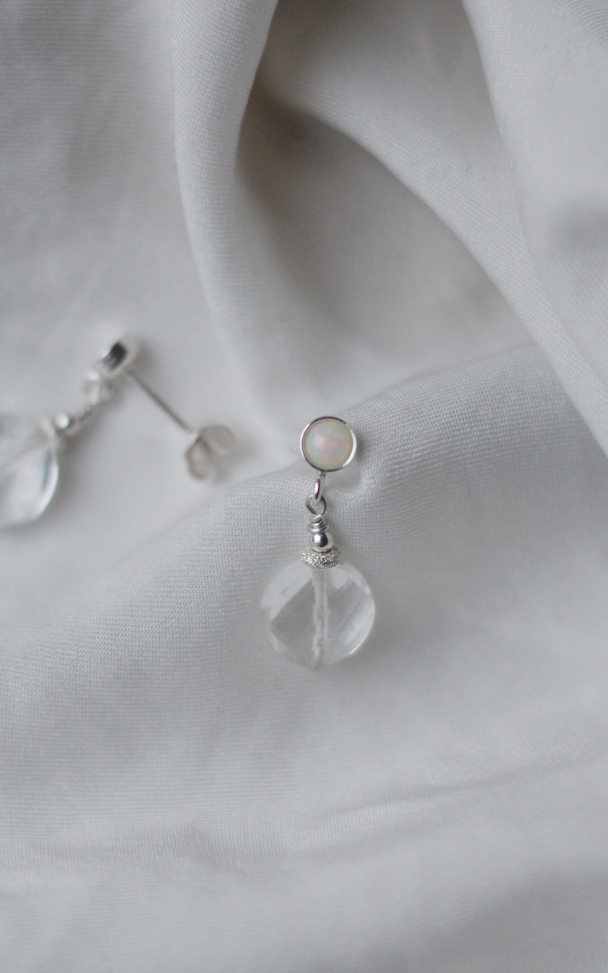 Tyto náušnice vytvořily víly ze záře praveho etiopského opálu a horského křišťálu.