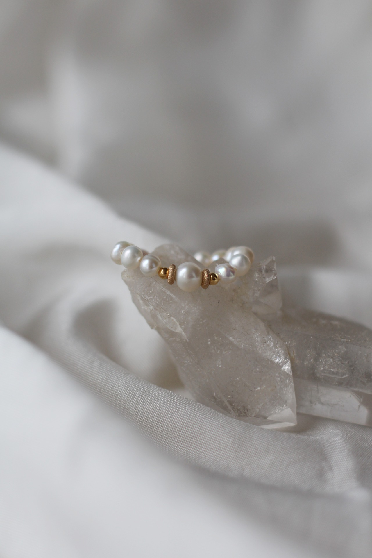 Tento prstýnek je vyroben ze říčních perliček a stříbra.