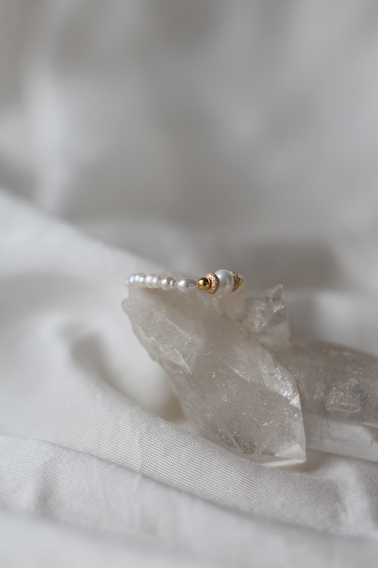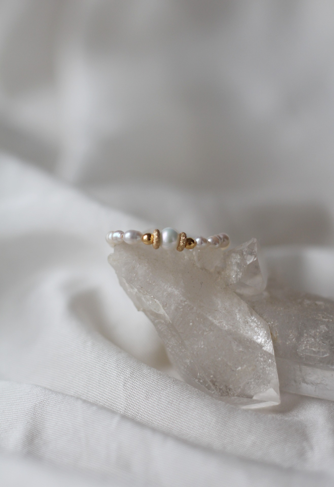 Tento prstýnek je vyroben ze říčních perliček a stříbra.